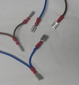 Twist together one end of the blue jumper wire and the end of the main blue wire. Then push this into the disconnect terminal and crimp with the wire tool.